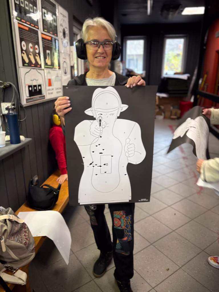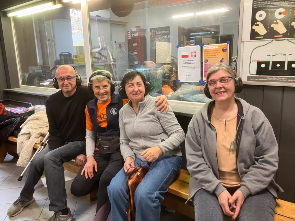 W strzelaniu z broni palnej szkoliła się grupa 20 seniorów płci obojga, w wieku powyżej 55 lat (w tym OzN) pod opieką doświadczonych, certyfikowanych instruktorów. Zajęcia strzeleckie odbywały się w obiekcie zamkniętym, dostosowanym do potrzeb osób z niepełnosprawnościami. Kursanci nauczyli się posługiwać bronią palną krótką i długą, dobraną do możliwości fizycznych uczestnika, w większości przypadków była to broń o małym odrzucie. Zajęcia strzeleckie odbywały się w obiekcie zlokalizowanym w centrum Krakowa, miejscu dobrze skomunikowanym, dysponującym miejscami parkingowymi. Wolontariusze zapewnili osobom z niepełnosprawnościami uczestniczącym w Projekcie wszelką pomoc i wsparcie w realizacji zajęć, od momentu przyjścia/przyjazdu do chwili opuszczenia strzelnicy.